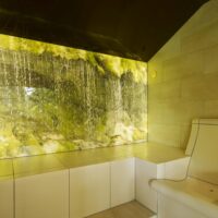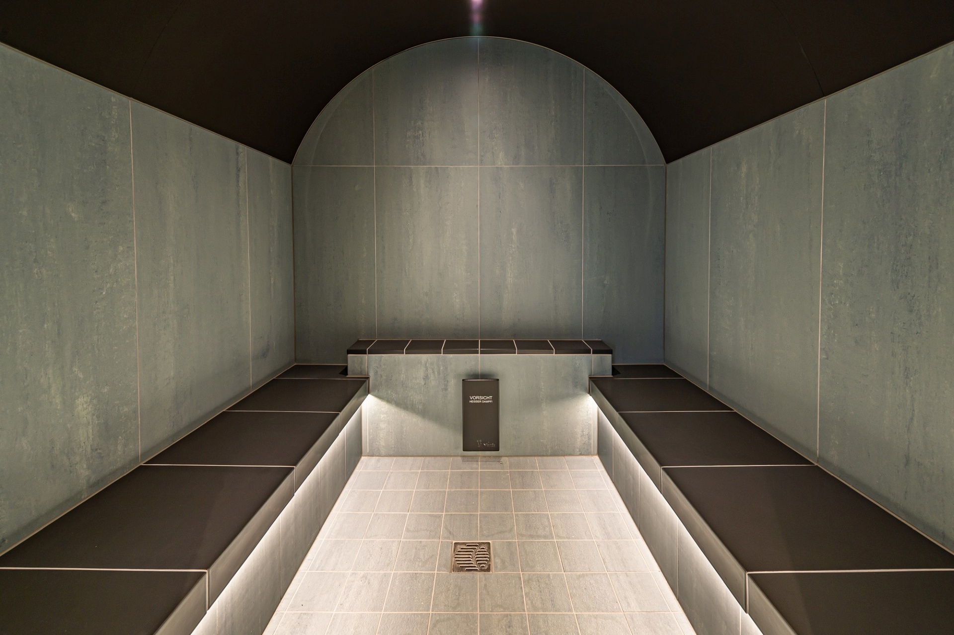 Ein Dampfbad ist rundum feucht und muss wegen der hohen Luftfeuchte sorgfältig abgedichtet werden, um Bauschäden zu vermeiden. Die inneren Oberflächen sind natürlich ebenfalls entsprechend feuchtefest auszuführen. Unsere Dampfbäder werden in der Regel aus massiven Werkstoffen wie Naturstein, Feinsteinzeug oder Keramik errichtet. Vor allem bei Naturstein muss die Eignung des Materials in der feuchten Atmosphäre überprüft werden.