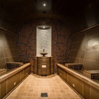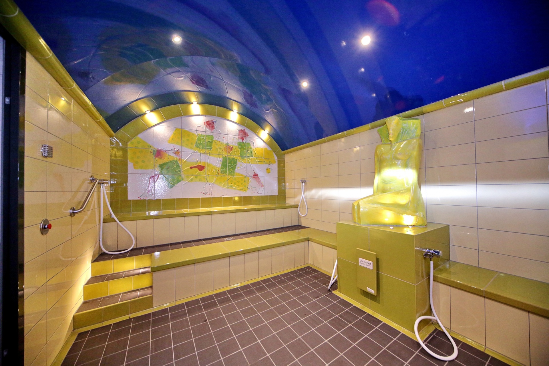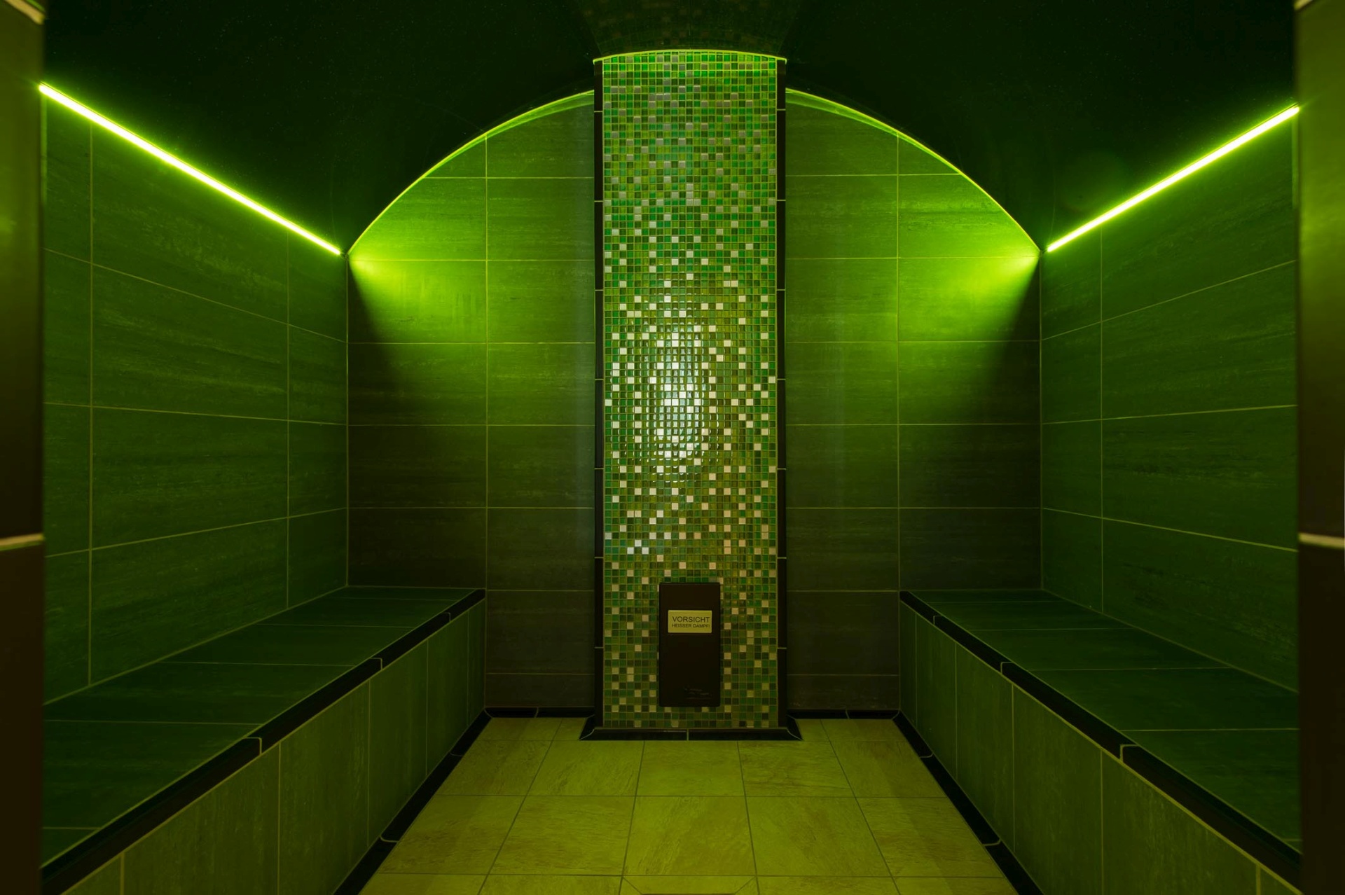 Das Dampfbad ist ein angenehmes Schwitz- und Inhalationsbad mit idealer Kombination von Wärme (43 – 48 Grad Celsius) und Luftfeuchtigkeit (100 % rel. Luftfeuchte). Die Hitze ist deutlich geringer als z.B. in der Sauna. Der Besuch eines Dampfbads und wird sehr wohltuend empfunden. Der heiße Dampf ist sehr gesund. Feinste Wassertröpfchen machen die Haut geschmeidig. Das gilt für die äußere Haut aber auch für die Atmungsorgane. Durch den Zusatz von Duftessenzen zum Dampf erfolgt beim Atmen eine entsprechende Inhalation. Deren Wirkungen hängt von den verwendeten Essenzen ab. Das können Kräuter aber auch andere wohltuende Zutaten wie z.B. eine Dampfbademulsion mit dem Duft der Kamille, Melisse, Eukalyptus oder Minze sein. Da die Luft mit Feuchte gesättigt ist, kann sie keine weitere Feuchtigkeit aufnehmen. Schweiß auf der Haut kann also nicht verdunsten. Da diese Verdunstung den Körper kühlen würde, die Kühlung aber ausbleibt, fühlen sich 45 °C im Dampfbad relativ heiß an. Für Anfänger ist zum Einstieg ein Dampfbad mit ca 10 Minuten Dauer ideal. Ein Aufenthalt im Dampfbad sollte auch für Profis maximal 15 Minuten dauern.