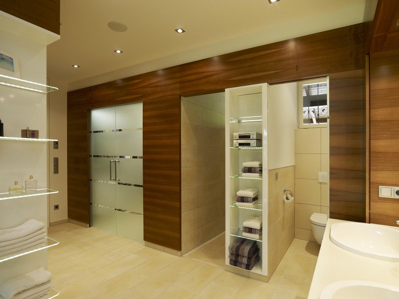 Der Wandbelag, sowie die Böden oder die Waschtischplatte kann aus den erlesensten Materialen wie hochwertigem Marmor, Granit, Feinsteinzeug oder mit hochwertiger Design-Keramik „Made in Germany“ erfolgen. Die zur Auswahl stehenden Design-Armaturen sind ebenfalls hochwertig und auch in besonderen Materialien z.B. in Gold erhältlich.